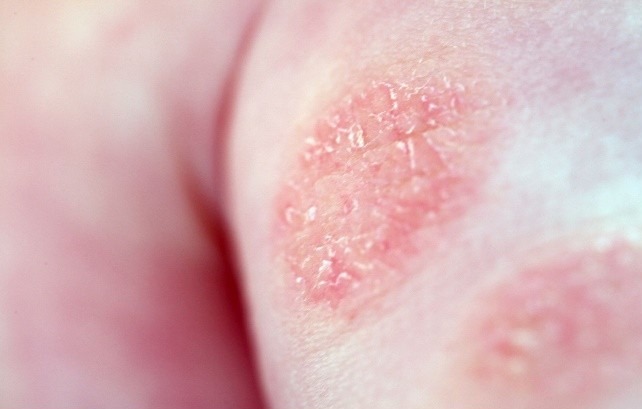 - Покрасневшая и воспаленная кожа, с сильным зудом, которая в дальнейшем при расчесах будет становиться все более раздраженной, и в дальнейшем из-за микротравм может присоединиться инфекция.